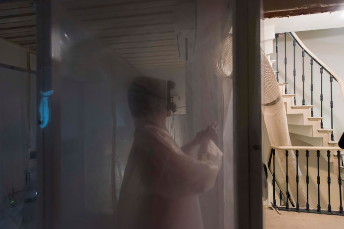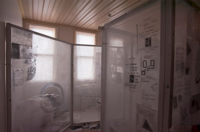 Dilimize “uzağa taşınım” ya da “mekan değiştirmek” seklinde de çevrilebilecek olan teleportasyona, eskiler “Tayy-ı Mekan” derlerdi. Mekandan bağımsız olma ve aynı anda birden çok yerde bulunabilme durumu olan Tayy-ı Mekan, mekanın kayıtlarını asmak anlamına gelmektedir. “Bast-ı Zaman” ise, zamanın ve kayıtlarının ortadan kalkması ve zamanın genişlemesi anlamındadır. AslieMk Zaman ve Mekan Arastırmaları Laboratuvarı’nda, iki bilim insanının beden imgelerinin kopyalarını, bulundukları binanın belirli bir noktasına ışınlama denemelerine tanık oluyoruz. Işınlanma (teleportasyon) işlemindeki maddenin atomlara ayrılma ve yeniden birleşme sürecinde beden imgeleri her defasında parçalara ayrılır ve farklı zaman/mekan/bilinç kombinasyonlarıyla çoğalır.